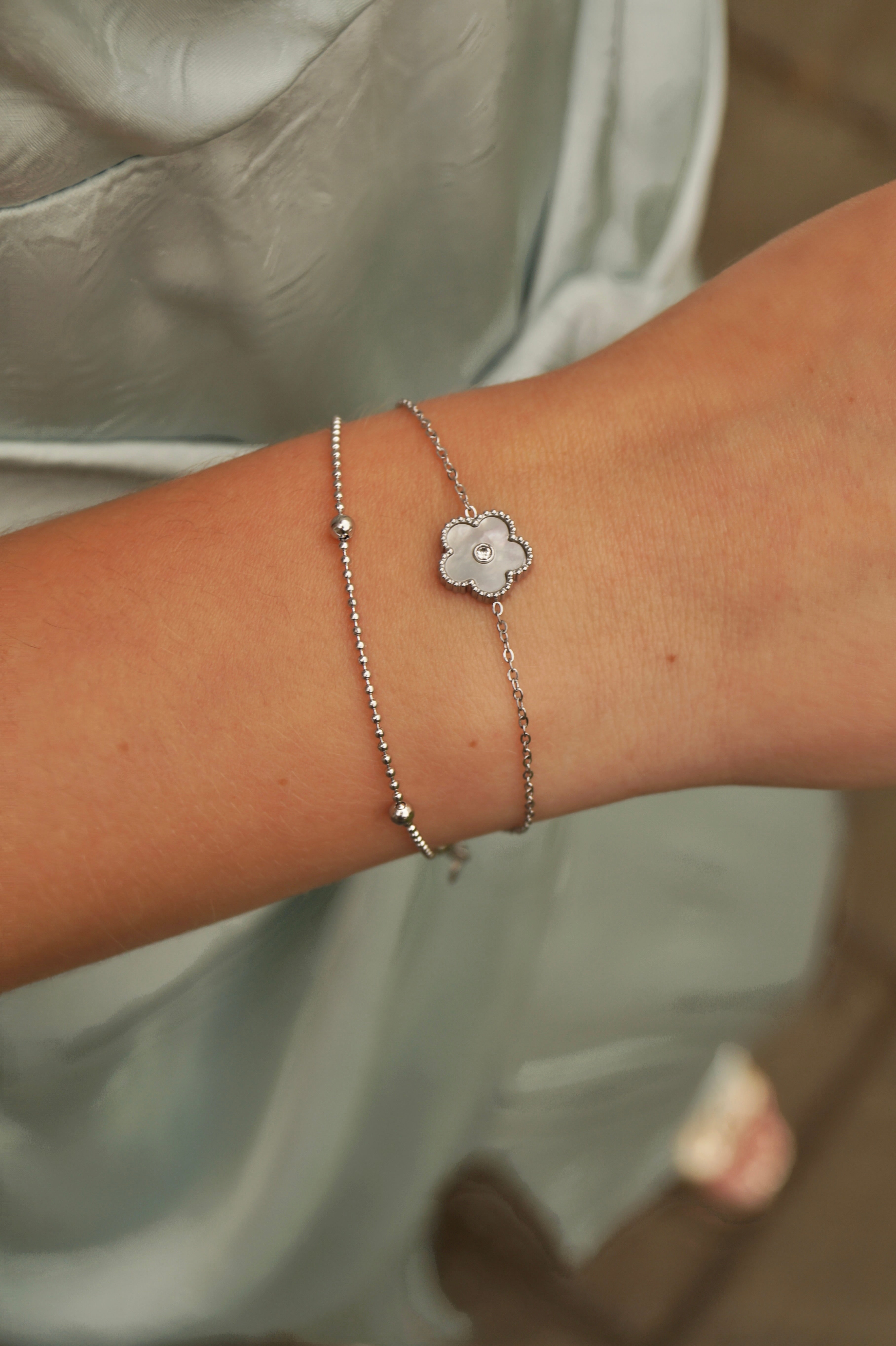 Silver Marble Flower (2 in 1) - Bracelet
