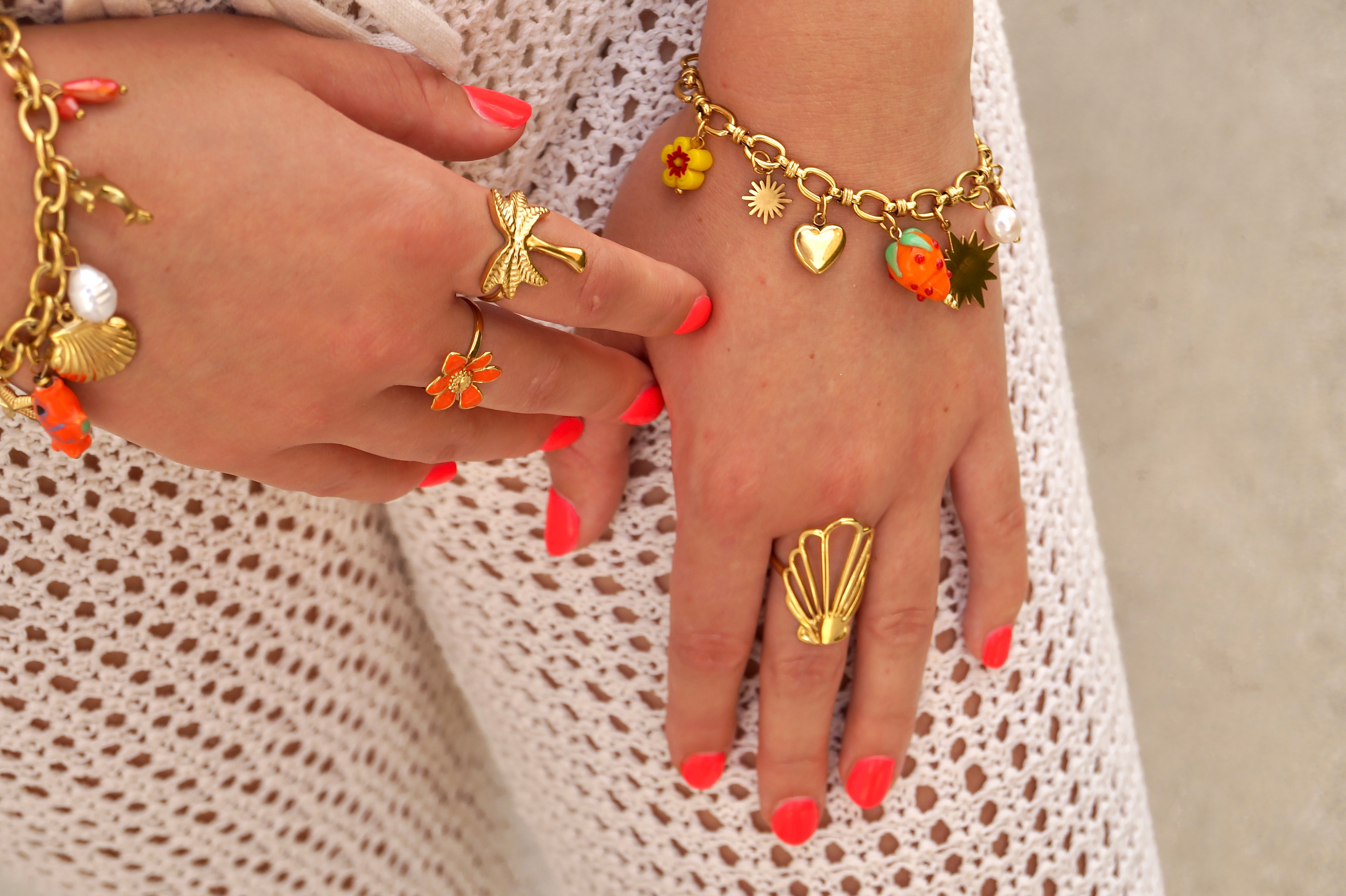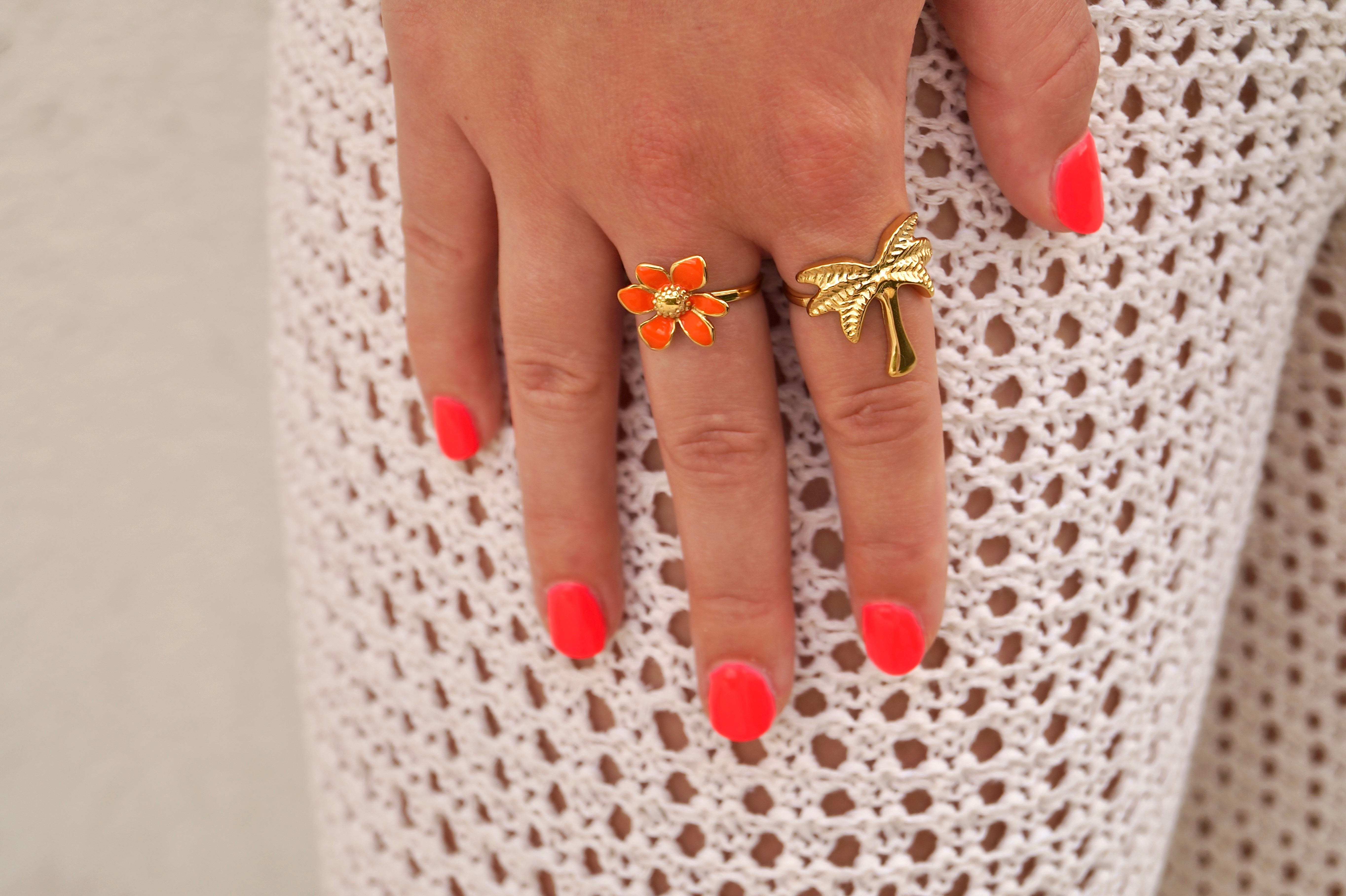 Oranje bloemen ring (links)