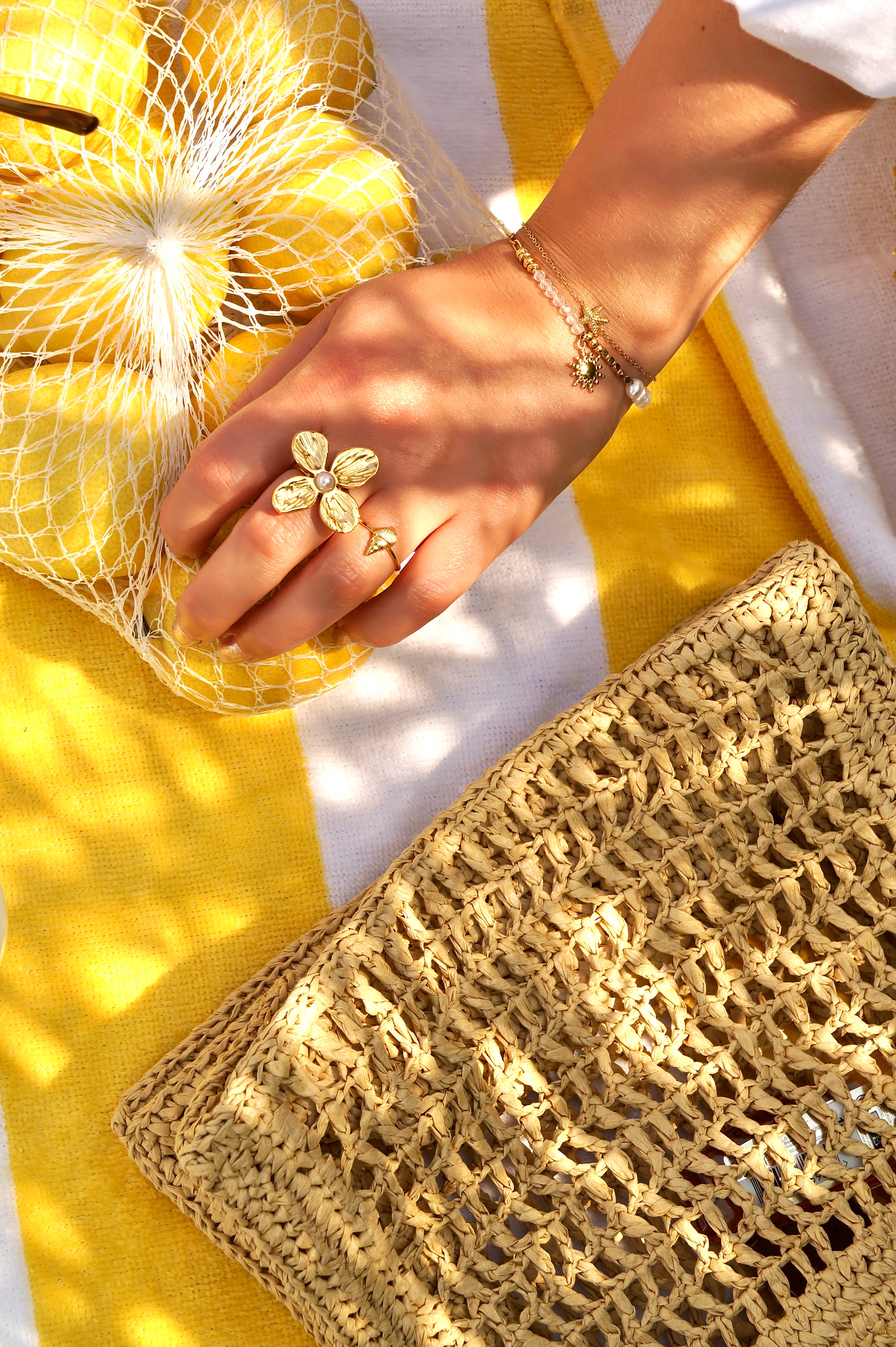 Onderste armbandje met pareltjes & zonnetje