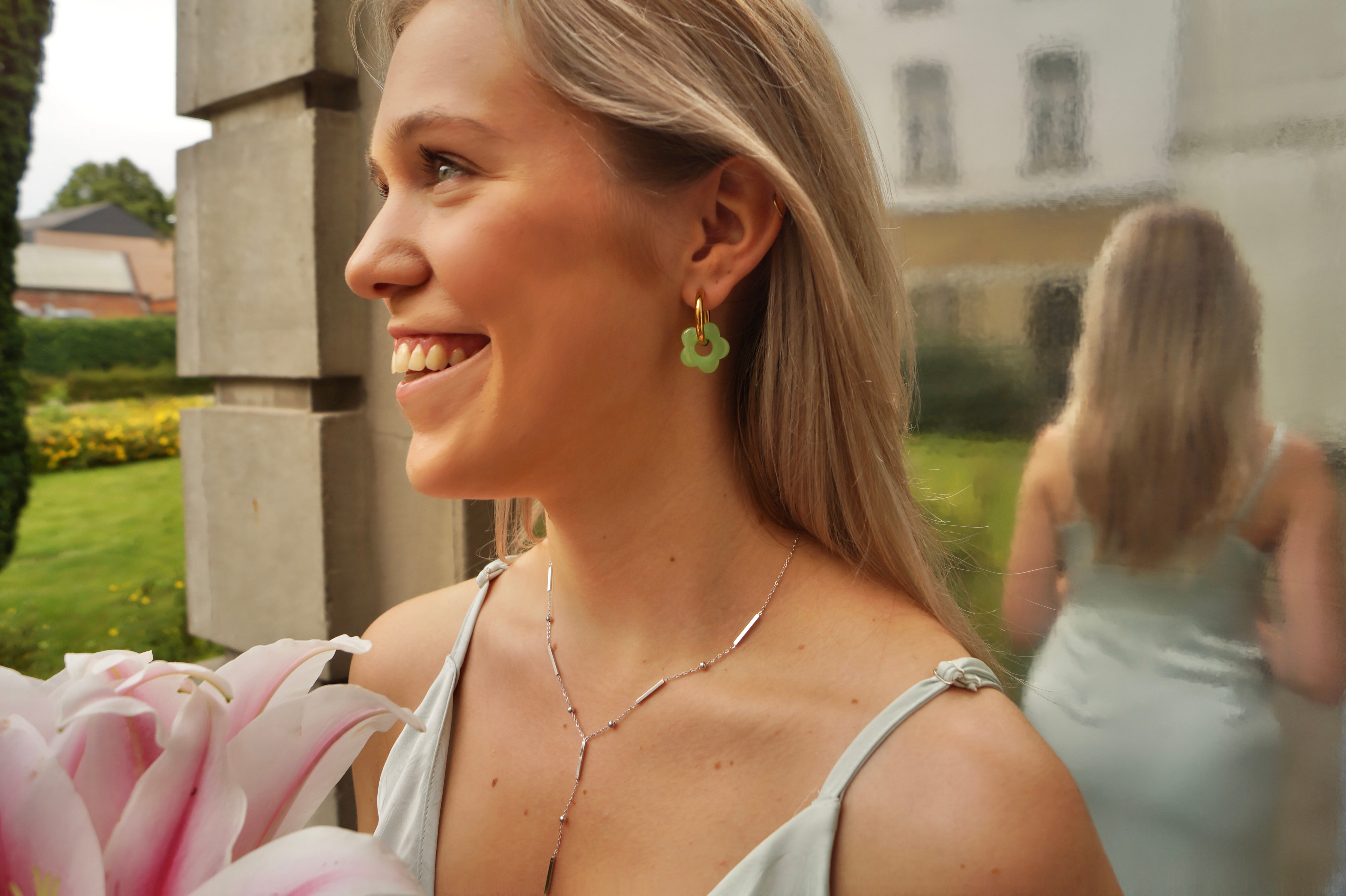 Green Flower Hoopie - Earrings