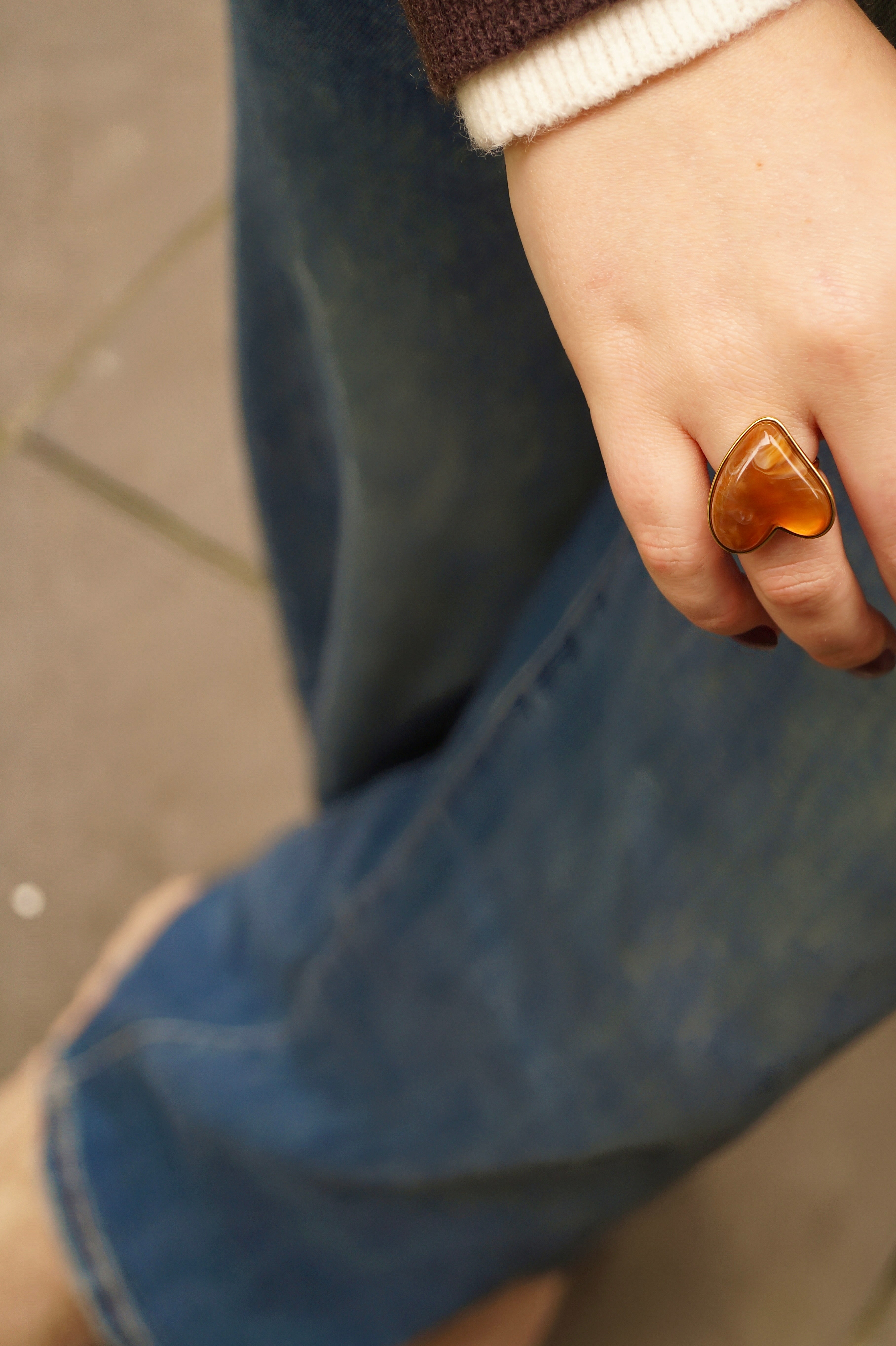 Brown Marble Heart - Ring
