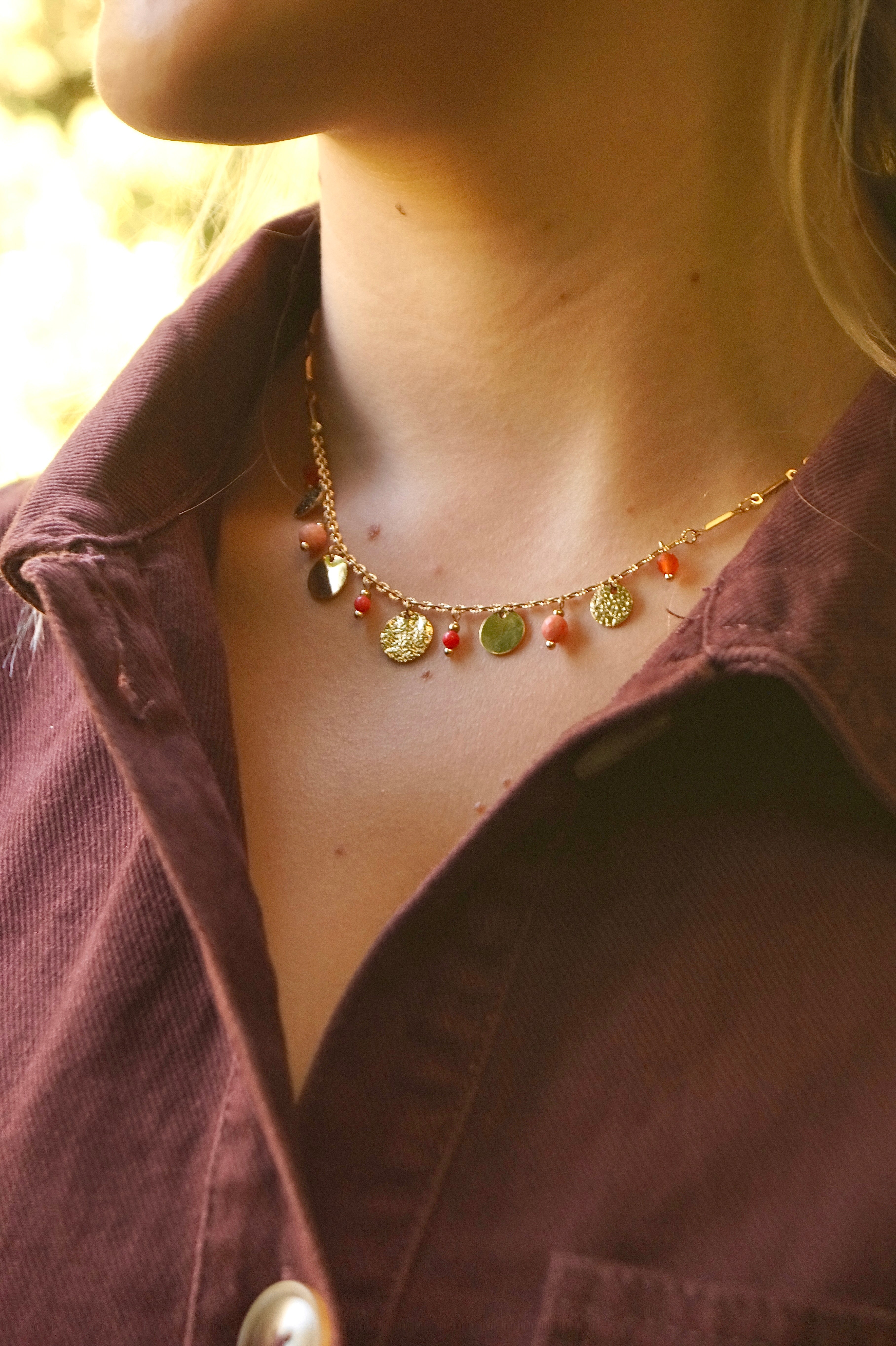Orange Pearls & Golden Coins - Necklace