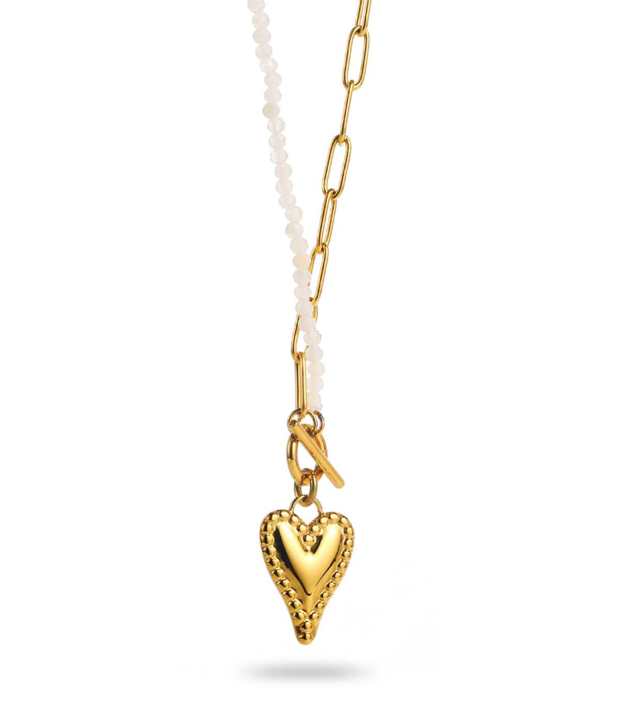 White Pearls & Golden Heart - Necklace