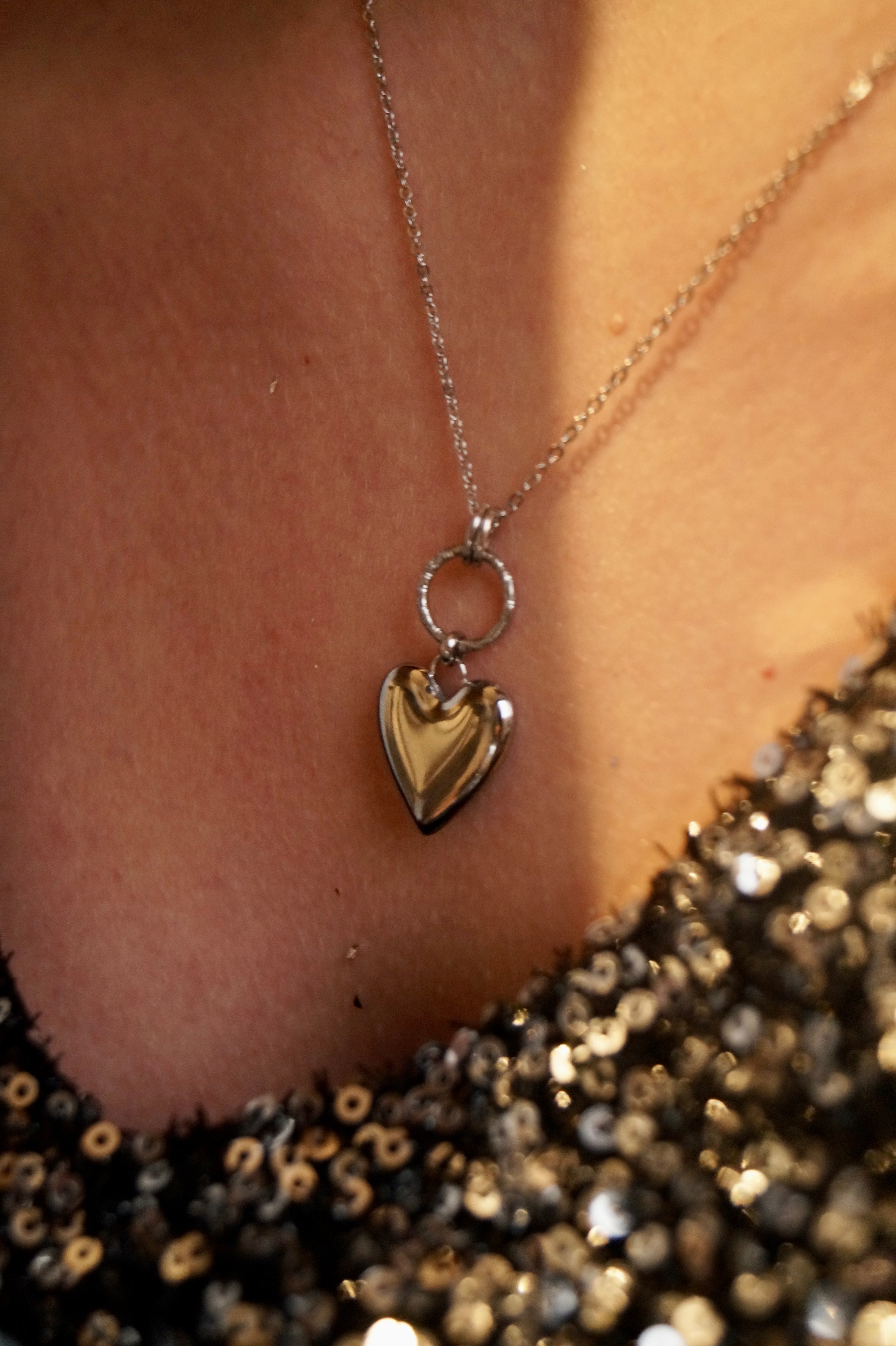 Silver Longer Heart Medaillon - Necklace