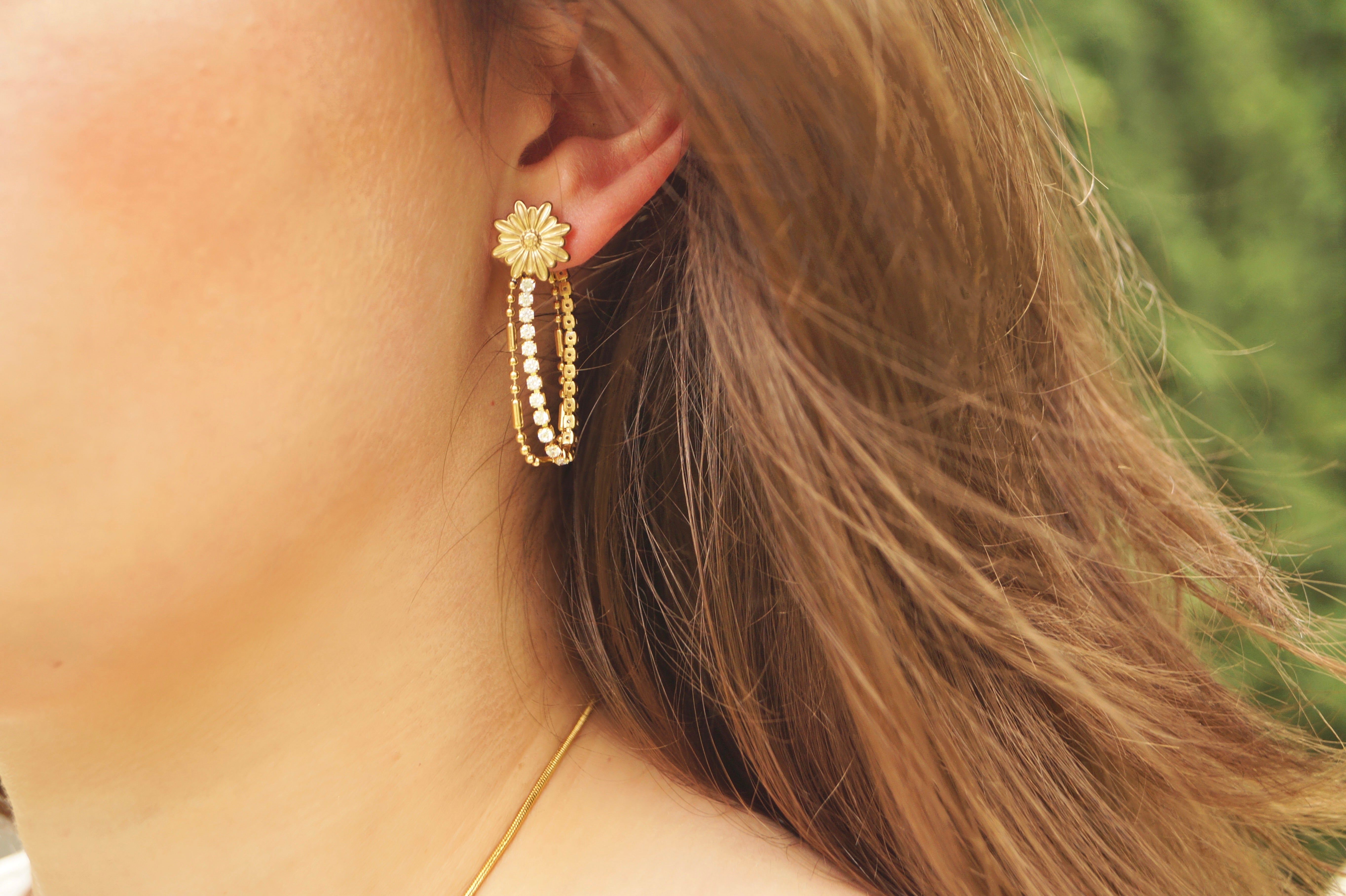 Long Flower Strass - Earrings