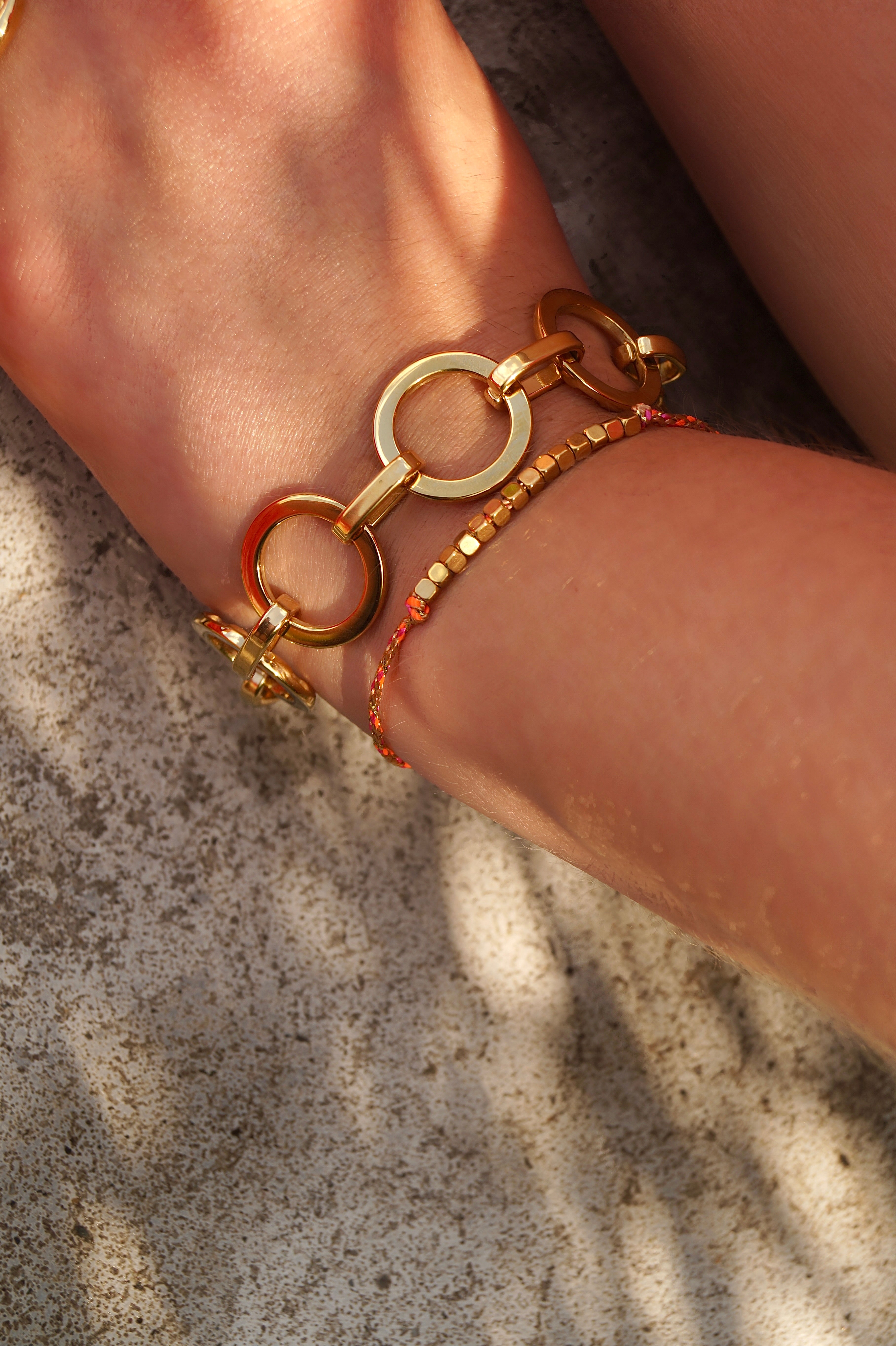 Onderste armbandje met oranje koord