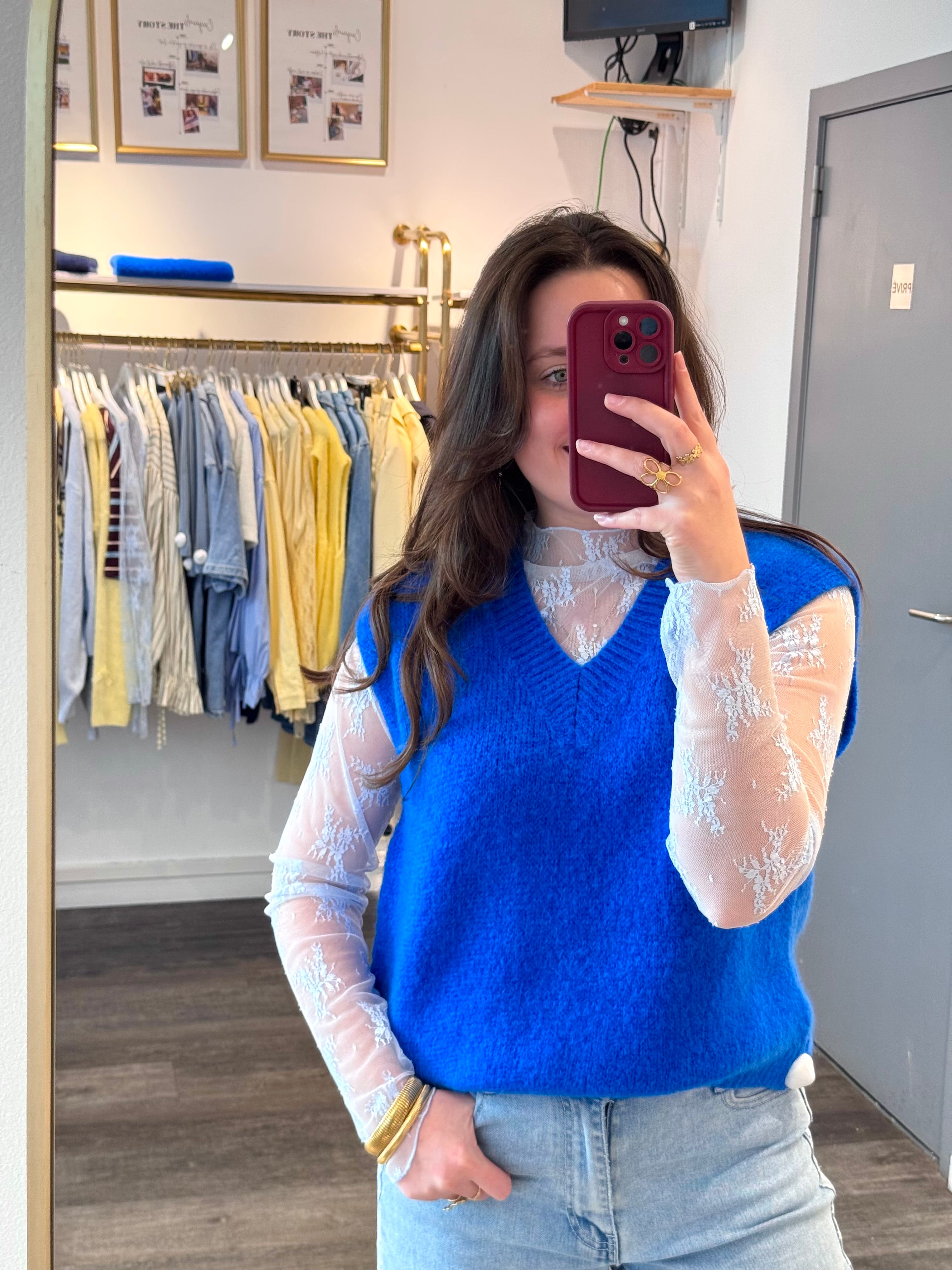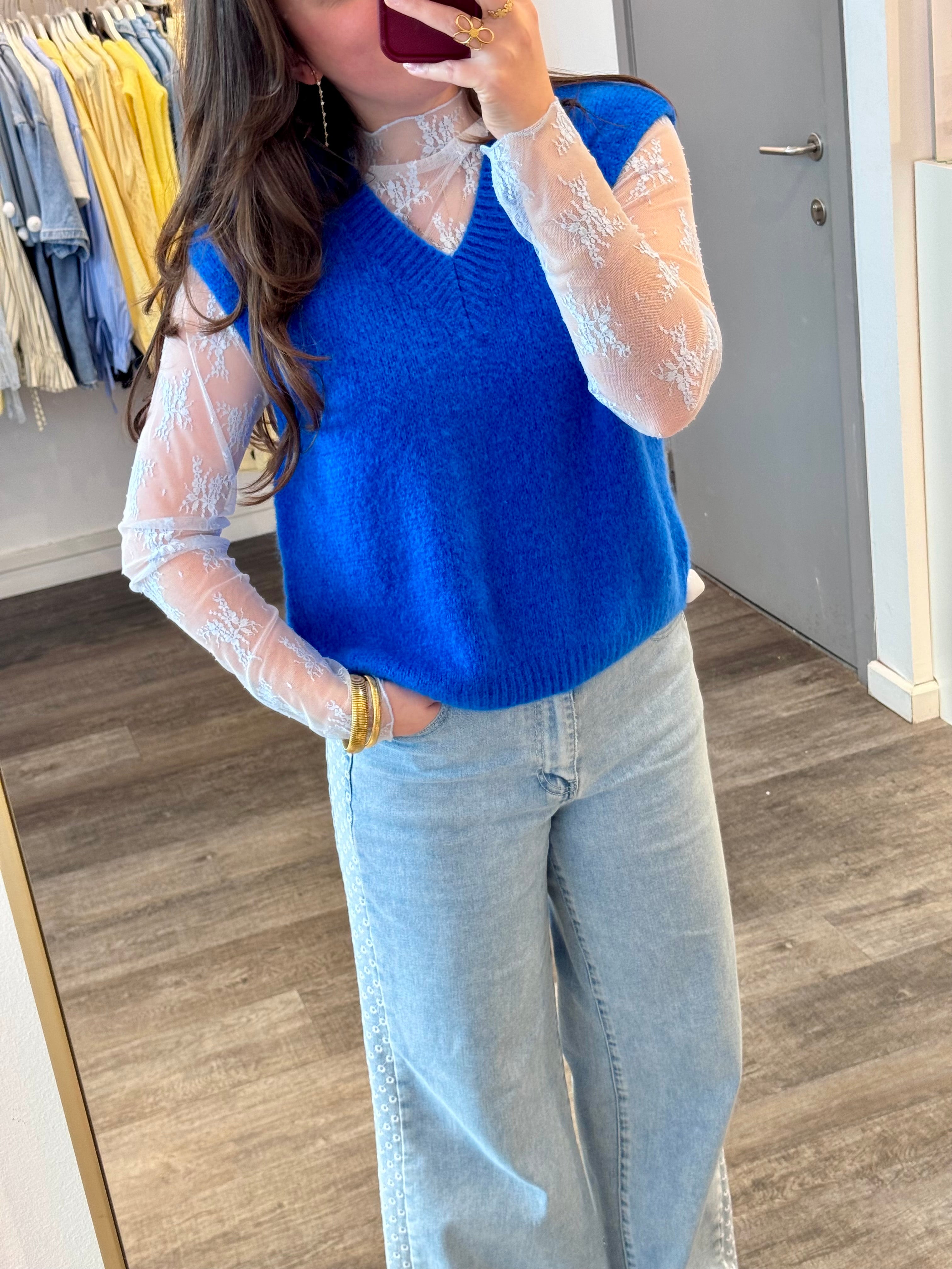 Fel blauwe debardeur zonder mouwen met een klassiek, elegant design. Perfect voor zomerse dagen of als laagje onder je favoriete jasje. Het lichte materiaal zorgt voor maximaal comfort en bewegingsvrijheid. Ideaal voor casual looks of als basis voor je outfit. Een must-have in je garderobe voor een frisse, moderne uitstraling.
