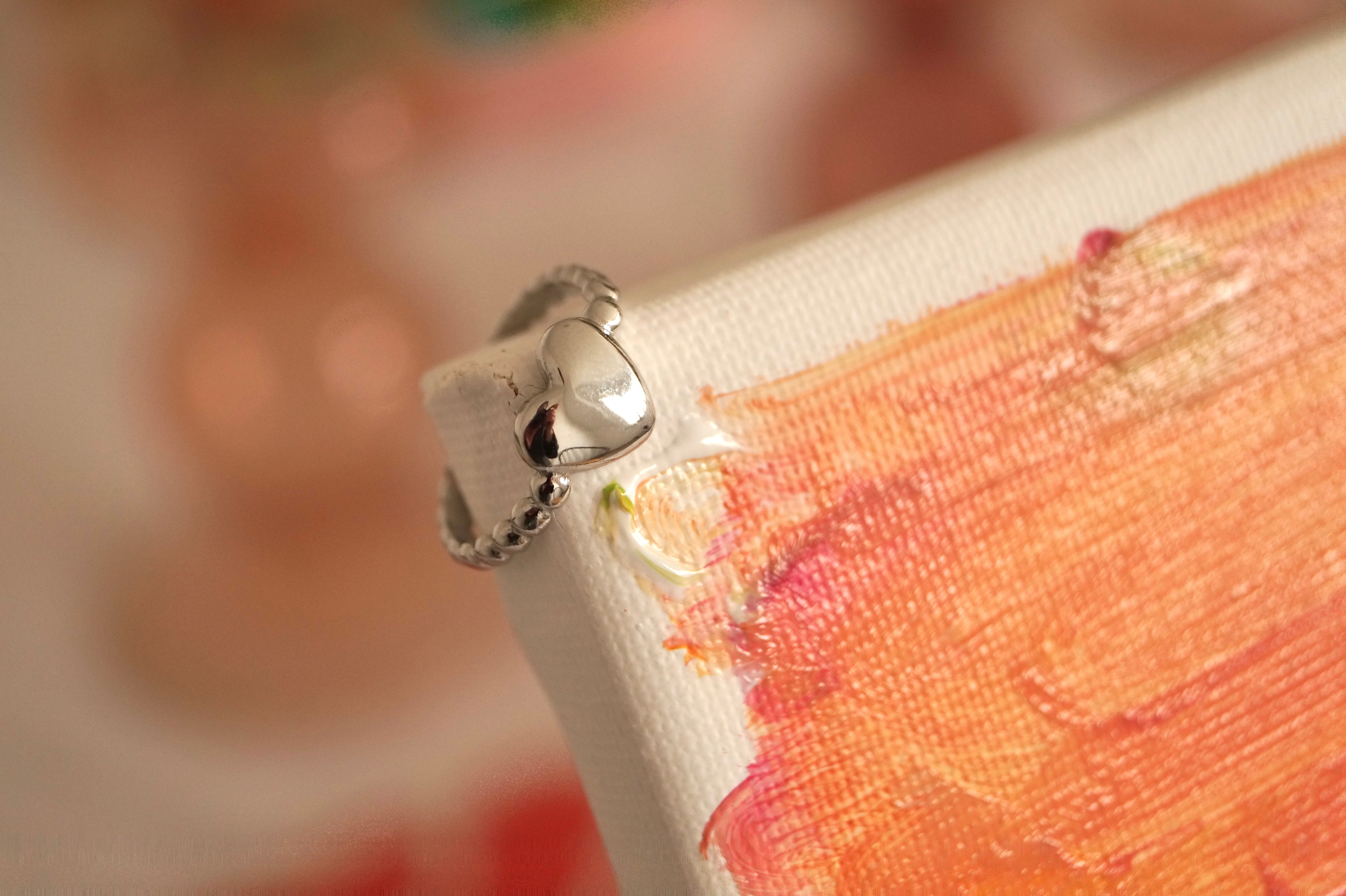 Silver Bubbly Dot Heart - Ring