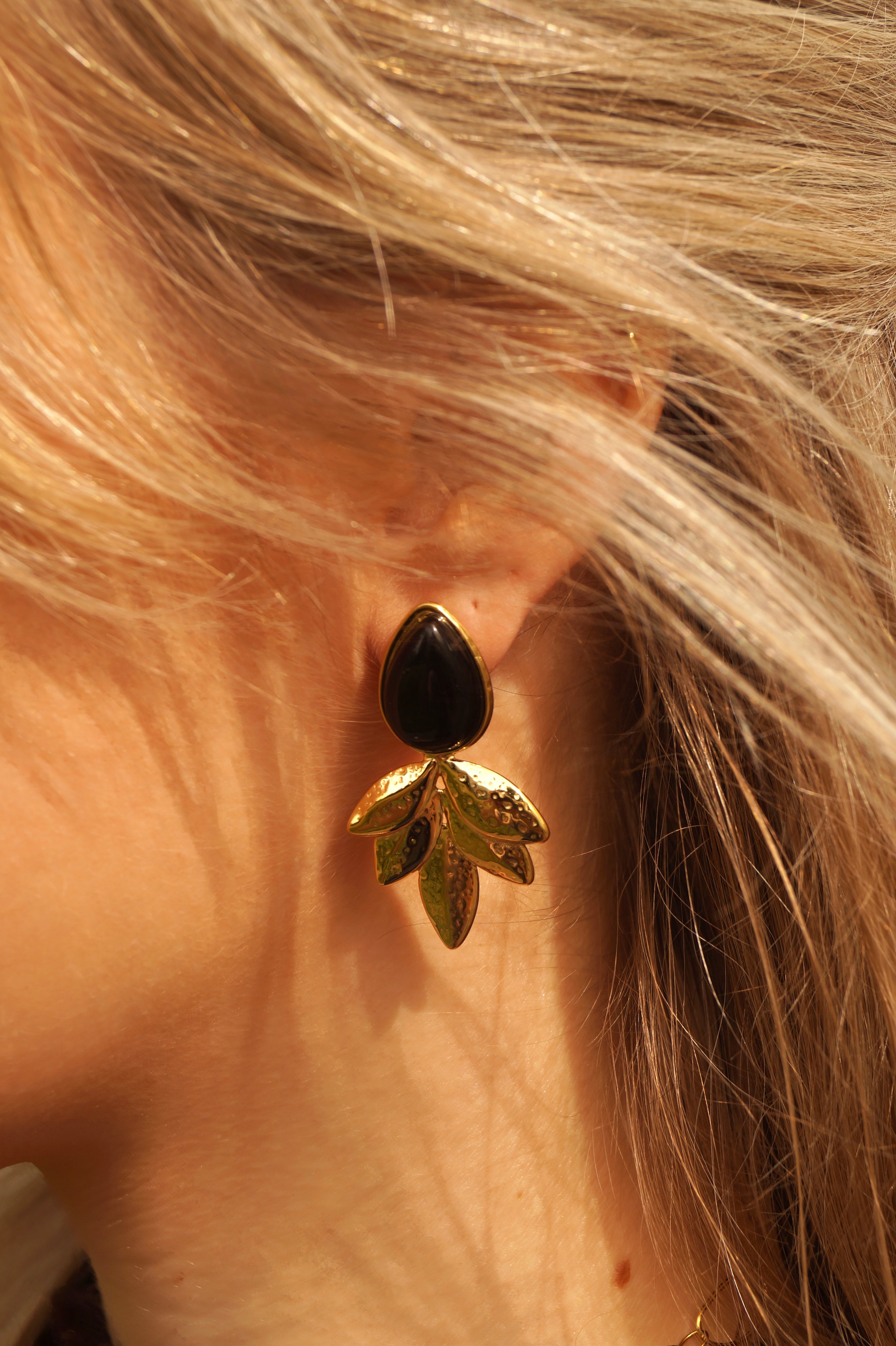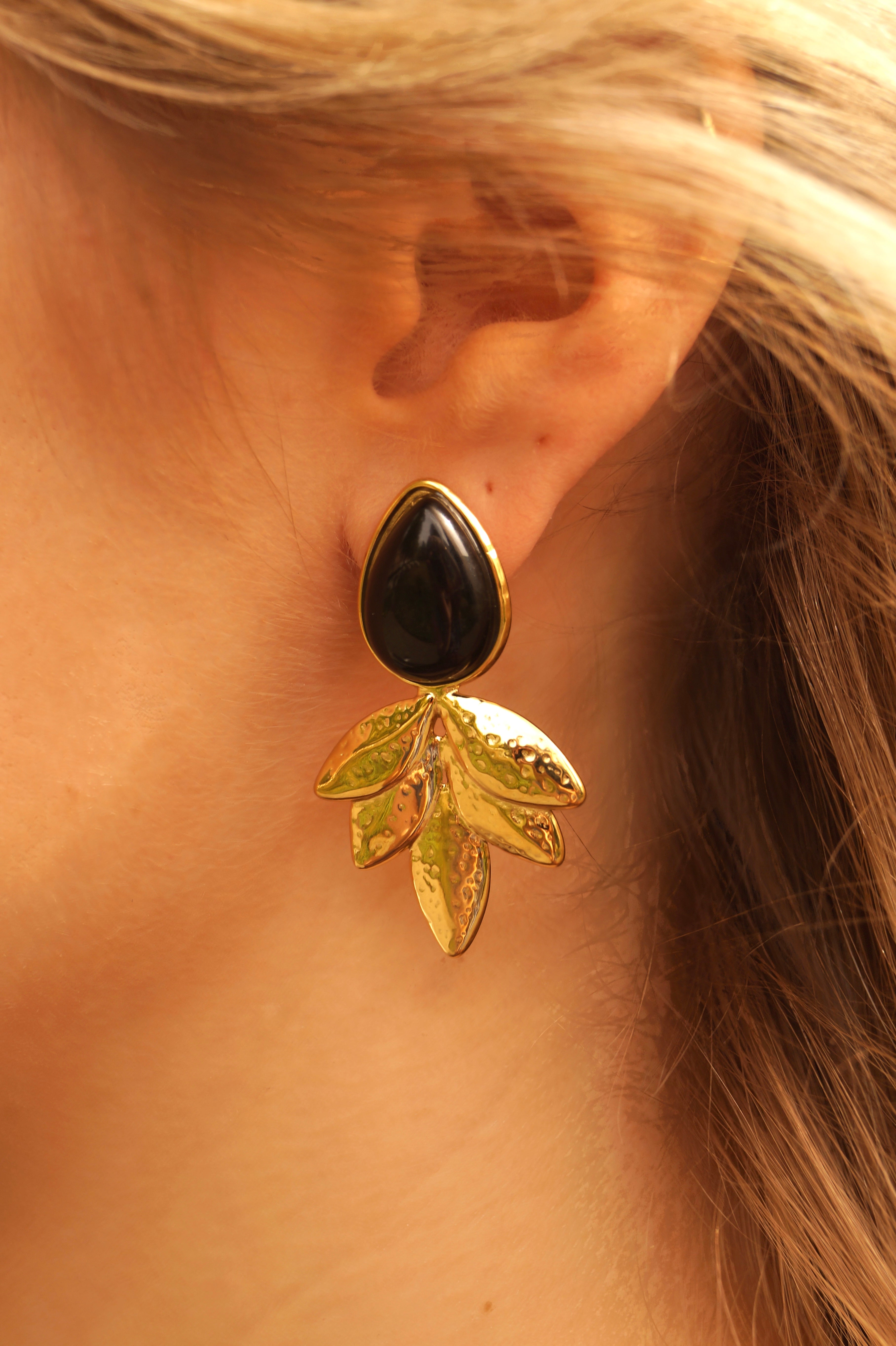 Black Pearl & Leaves - Earrings